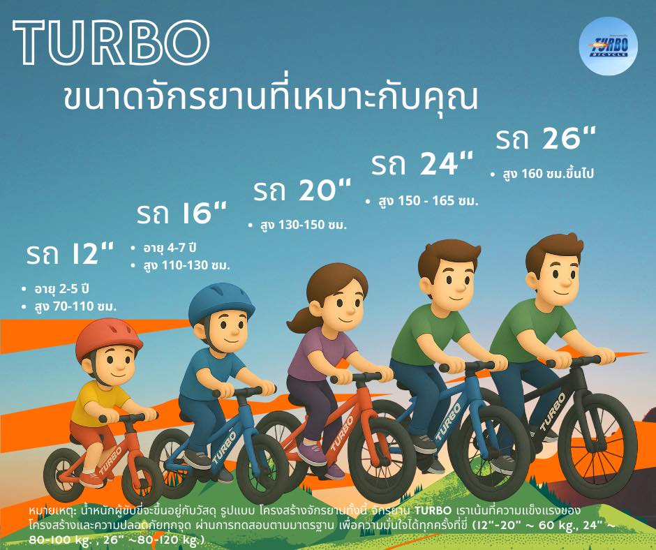 จักรยาน TURBO ออกแบบมาให้เหมาะกับผู้ใช้ทุกช่วงวัย ตั้งแต่เด็กเล็กจนถึงผู้ใหญ่