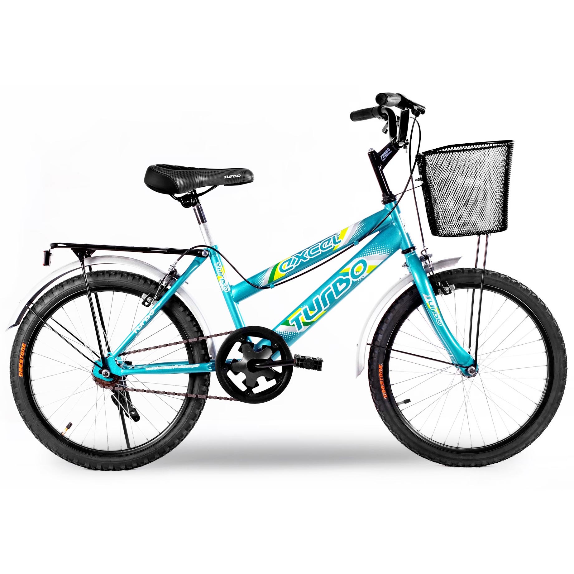 ตะกร้าหน้าพลาสติกแบบสาน, ตะแกรงท้าย, บังโซ่นกหวีด, ขาตั้งเดี่ยวล็อค และ กระดิ่งอัลลอยด์
