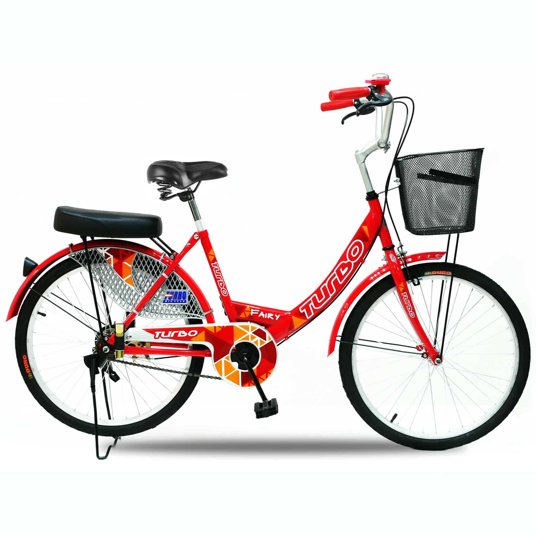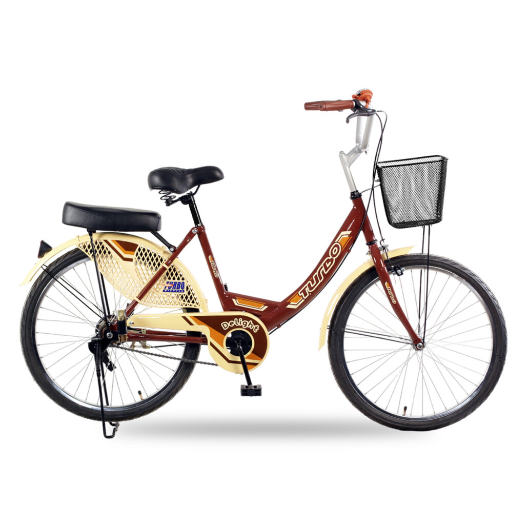 ตะกร้าหน้าแบบสาน, ตะแกรงท้าย, ขาตั้งเดี่ยวล็อค, พักเท้าแบบพับได้ และ กระดิ่งอัลลอยด์